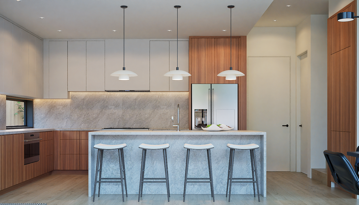 Each residence at 4404 Jinx is organized around a clear and well-considered plan that prioritizes comfort, proportion, and ease of living. Interiors are calm and composed, with open main living areas that feel generous without excess and private rooms arranged to support everyday life and hosting alike. The overall effect is cohesive and intentional, allowing the architecture to speak quietly rather than compete for attention.