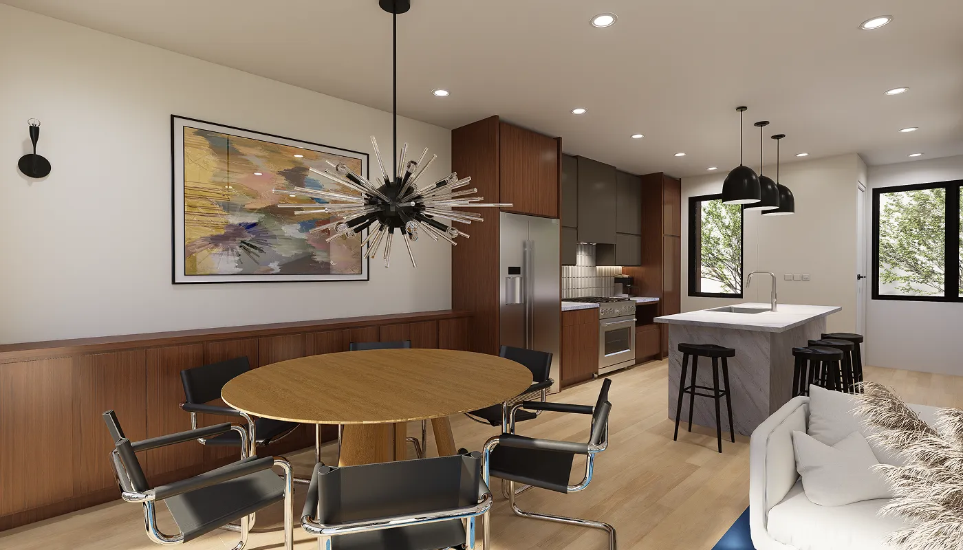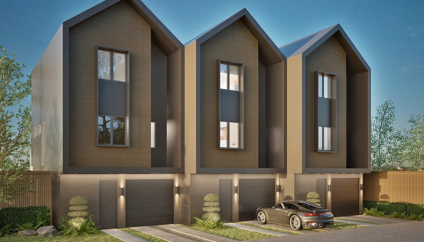 Designed as a collection of modern, attached townhomes, the residences at 4413 Banister balance clean architecture with highly livable interiors. Each home features a thoughtfully composed facade and a layout that maximizes light, privacy, and flow across multiple levels.