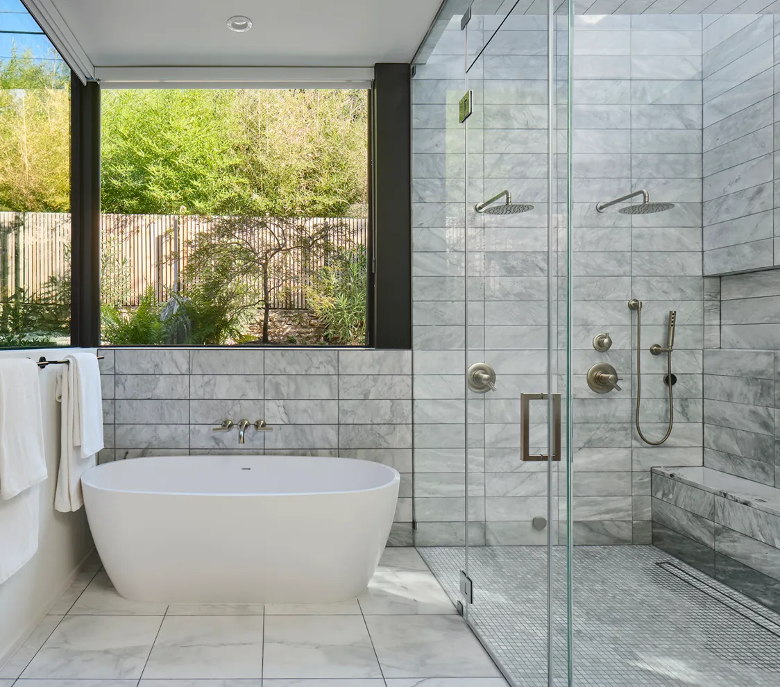 Built into the hillside, this home features a mix of concrete, steel, warm wood, and glass—materials chosen to age beautifully and feel connected to the landscape. The design is clean and modern, with natural textures and finishes that bring warmth and balance to the space.