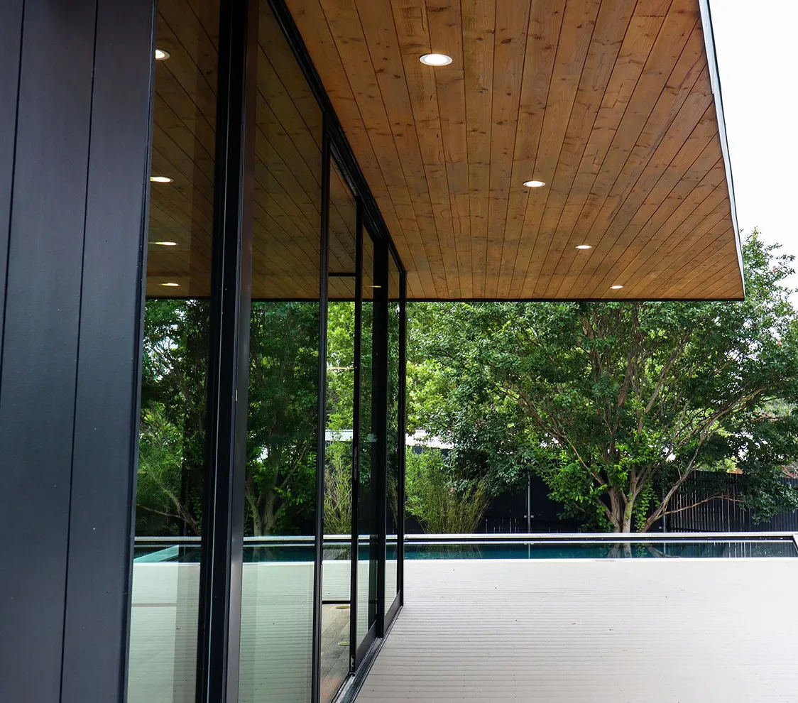 Inside, an open-concept layout flows beneath soaring ceilings and expansive windows, filling the space with natural light and creating a seamless connection to the outdoor retreat. The backyard boasts a pool and covered lounge area—ideal for both entertaining guests and relaxing in privacy.