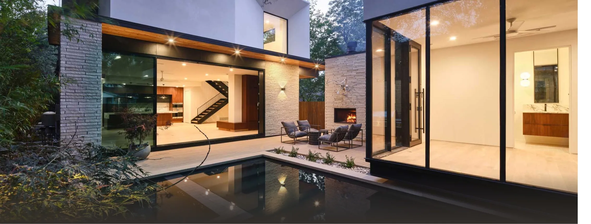 With a mix of natural stone and bold black accents, this home strikes the perfect balance between texture and modern elegance. Inside, an open floor plan and expansive windows create bright spaces that connect effortlessly to the private backyard. The outdoor area features lush landscaping, shaded patios, and a sparkling pool.